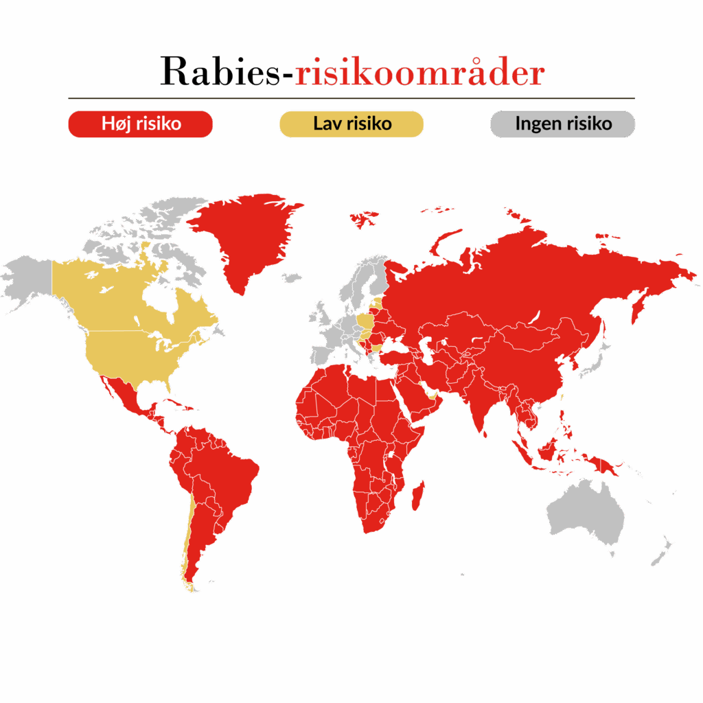 Rabies er især udbredt i Afrika, Asien og Sydamerika. Hvis man først har